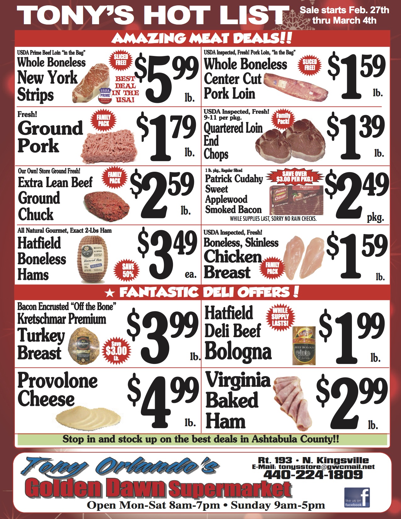 I added a digital Hot List, which is a second ad each week offering crazy meat and deli deals, above and beyond our eight-page tab, and this is working. I struck a deal with our local paper, to create it all in digital, and it is sent out weekly. So far I’m liking the results, as our area of coverage goes into Western Pennsylvania and towards Cleveland.