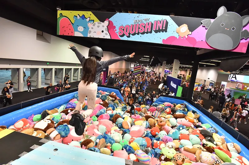 En VidCon, Squishmallow instaló un “squish pit” interactivo para que los aficionados saltaran a él, parecido a un foso de espuma de gimnasia lleno de peluches. Este acontecimiento les ha hecho ganar millones de impresiones gratuitas en Internet, con casi 700 millones de visualizaciones en TikTok, la mayoría de las cuales son contenidos generados por los usuarios y publicados por los fans.